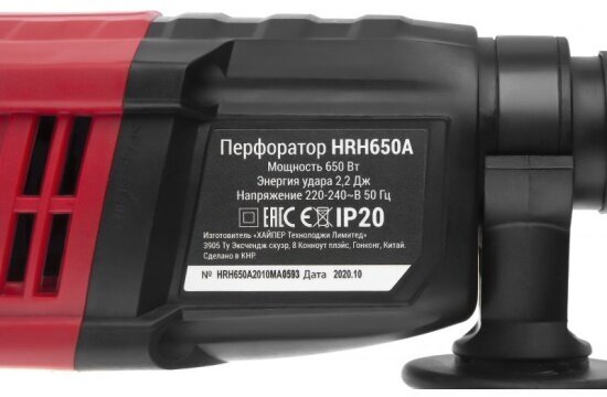 Additional handle - 1 pc., drilling limiter - 1 pc., drill 6 mm - 1 pc., drill 8 mm - 1 pc., drill 10 mm - 1 pc.
