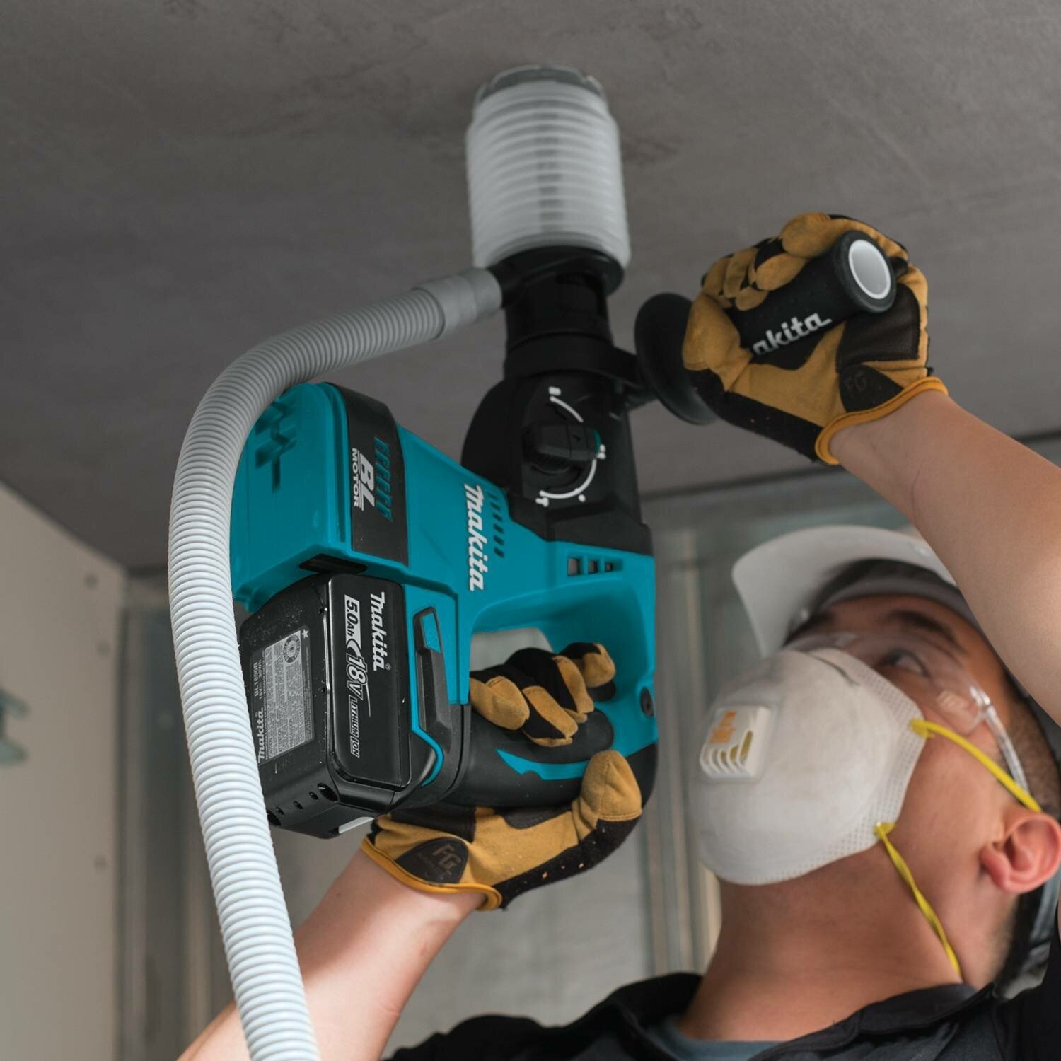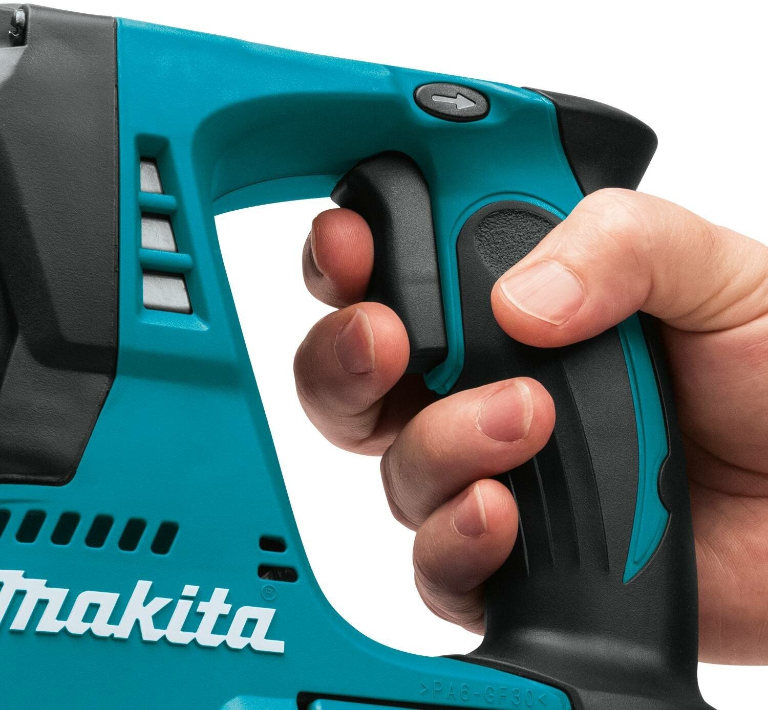 Anti-vibration system, power button lock, safety clutch, spindle lock, anti-vibration handle, battery charge indicator, depth gauge
