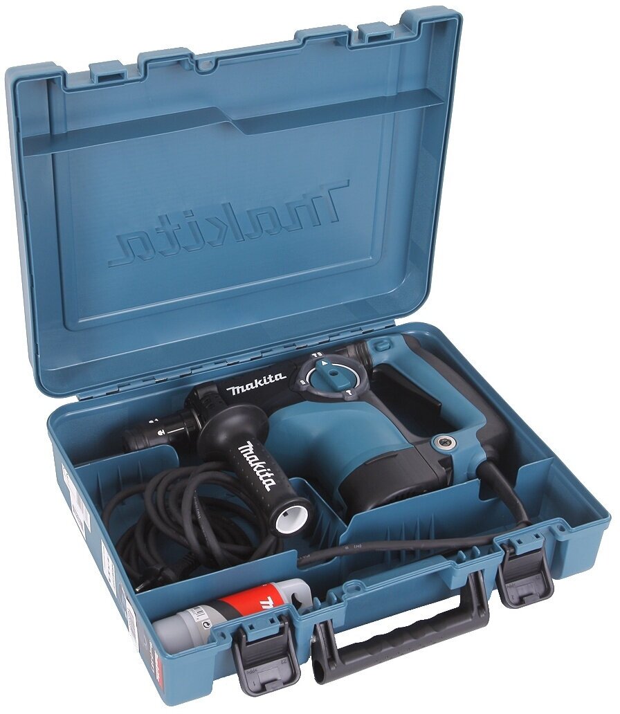 Side handle, drilling depth gauge, keyless chuck, carrying case