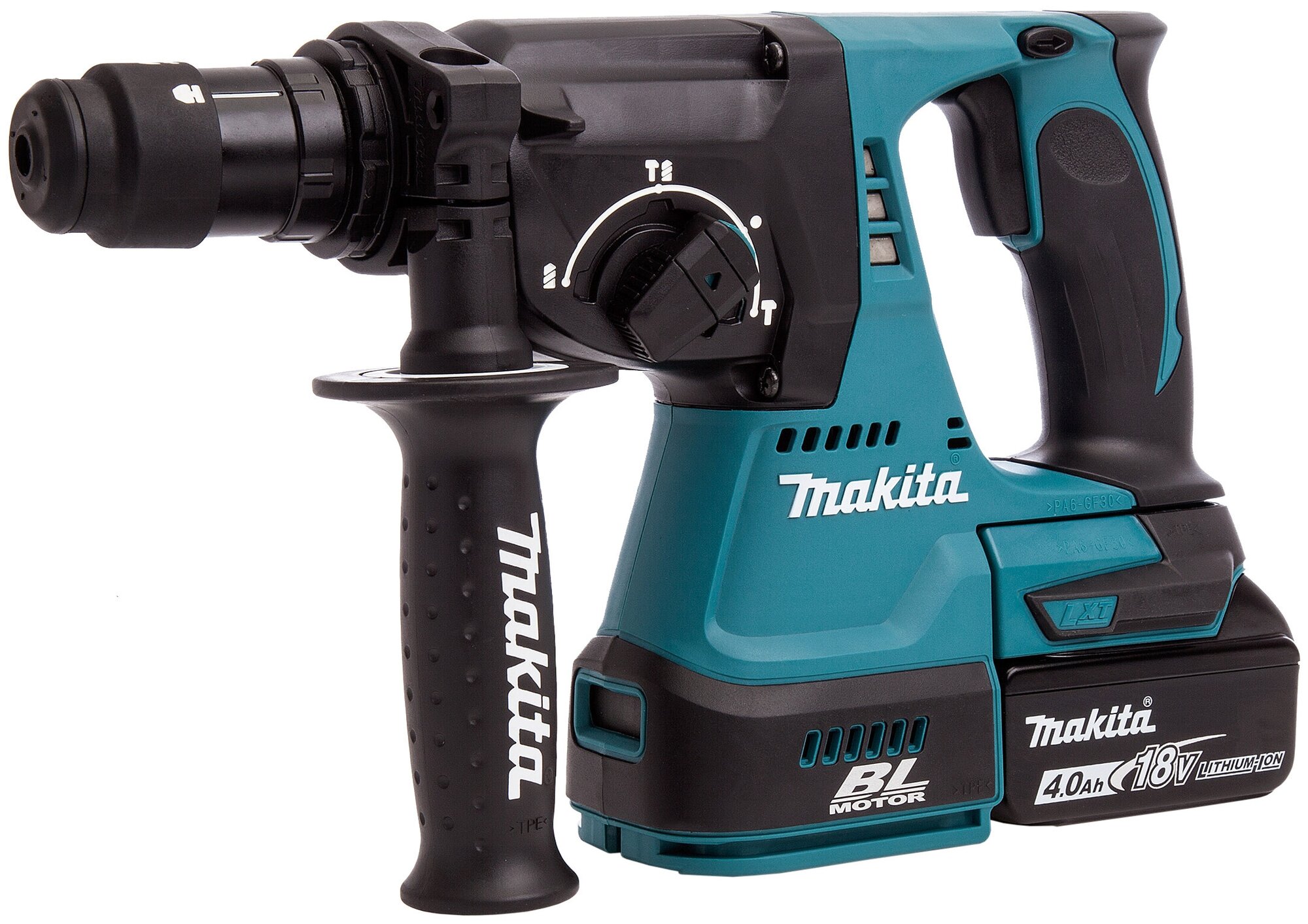 Additional handle, drilling depth gauge, two batteries, charger, keyless chuck, MAKPAC case