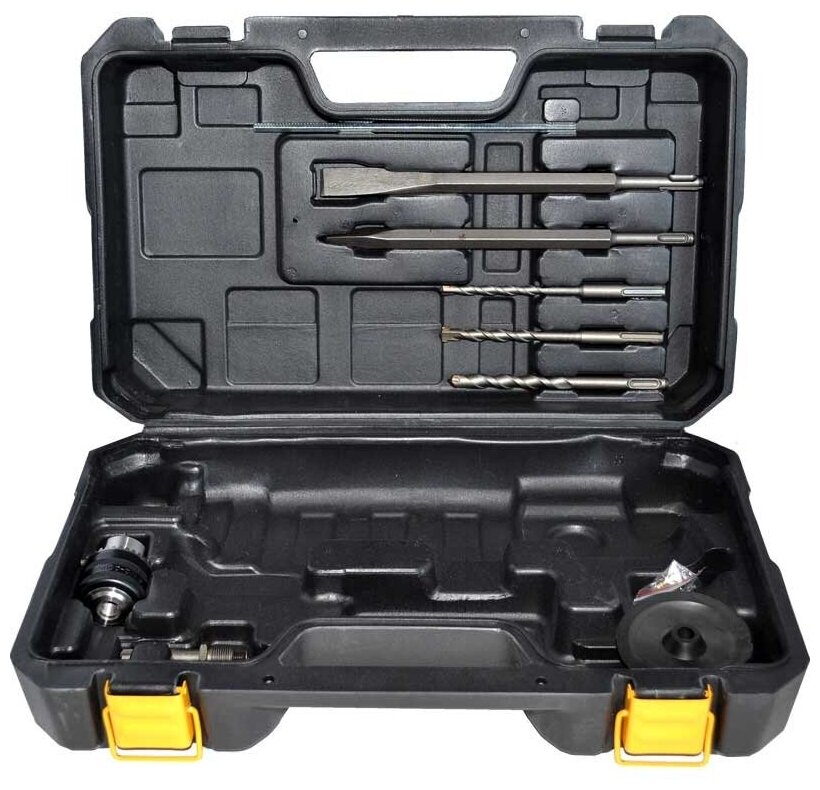 Additional handle, additional set of brushes, case, key chuck, drilling depth gauge