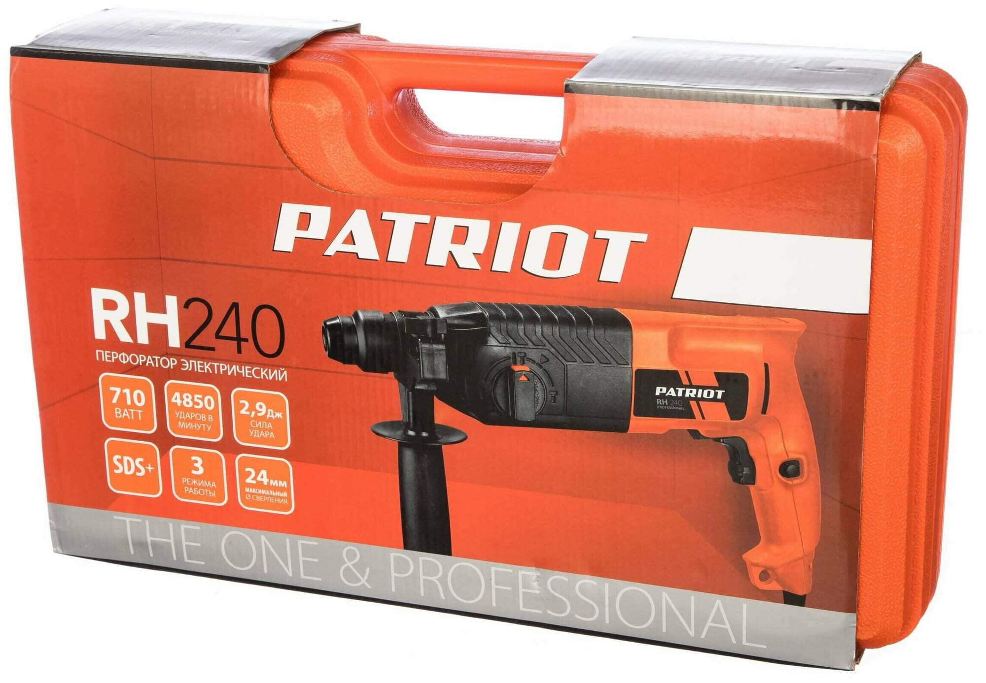 Perforator, drill 3 pcs., flat chisel 14x250 mm, pointed chisel 14x250 mm, additional handle, drilling depth limiter, 1 set of spare brushes, plastic case, instruction manual