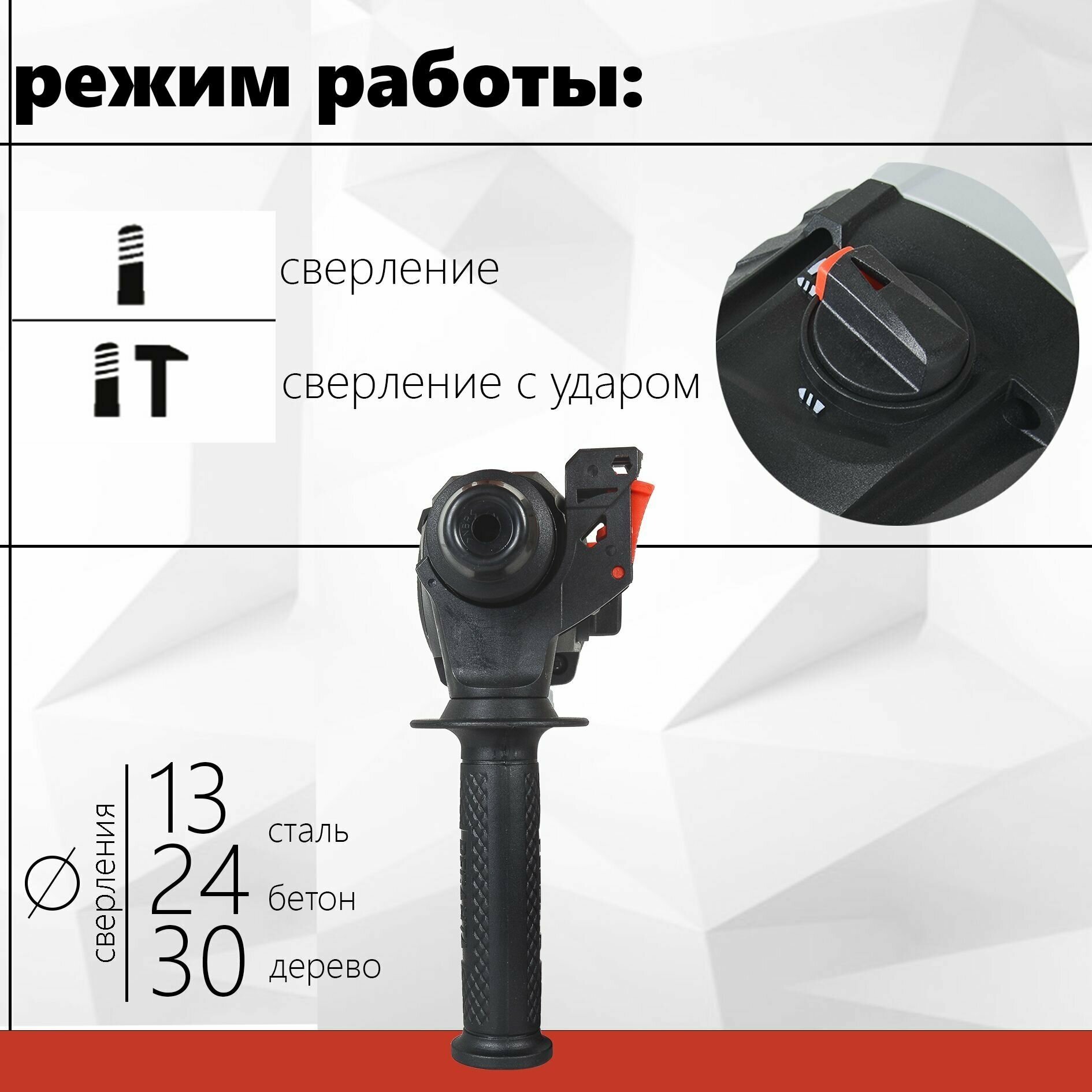 Perforator - 1 pc., drilling depth limiter - 1 pc., side handle - 1 pc., passport - 1 pc., plastic case - 1 pc.