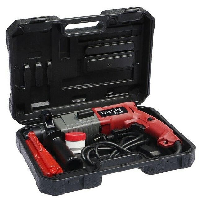 Case for storage and transportation 1 pc; perforator 1 pc; drilling depth limiter 1 pc; additional handle 1 pc; carbon brush 1 pc; drill lubricant 1 pc; drills 3 pcs; user manual with warranty card