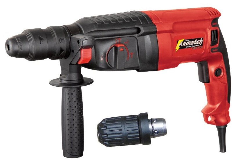 Equipment: Additional handle, drilling depth gauge, set of nozzles, keyless chuck, case
