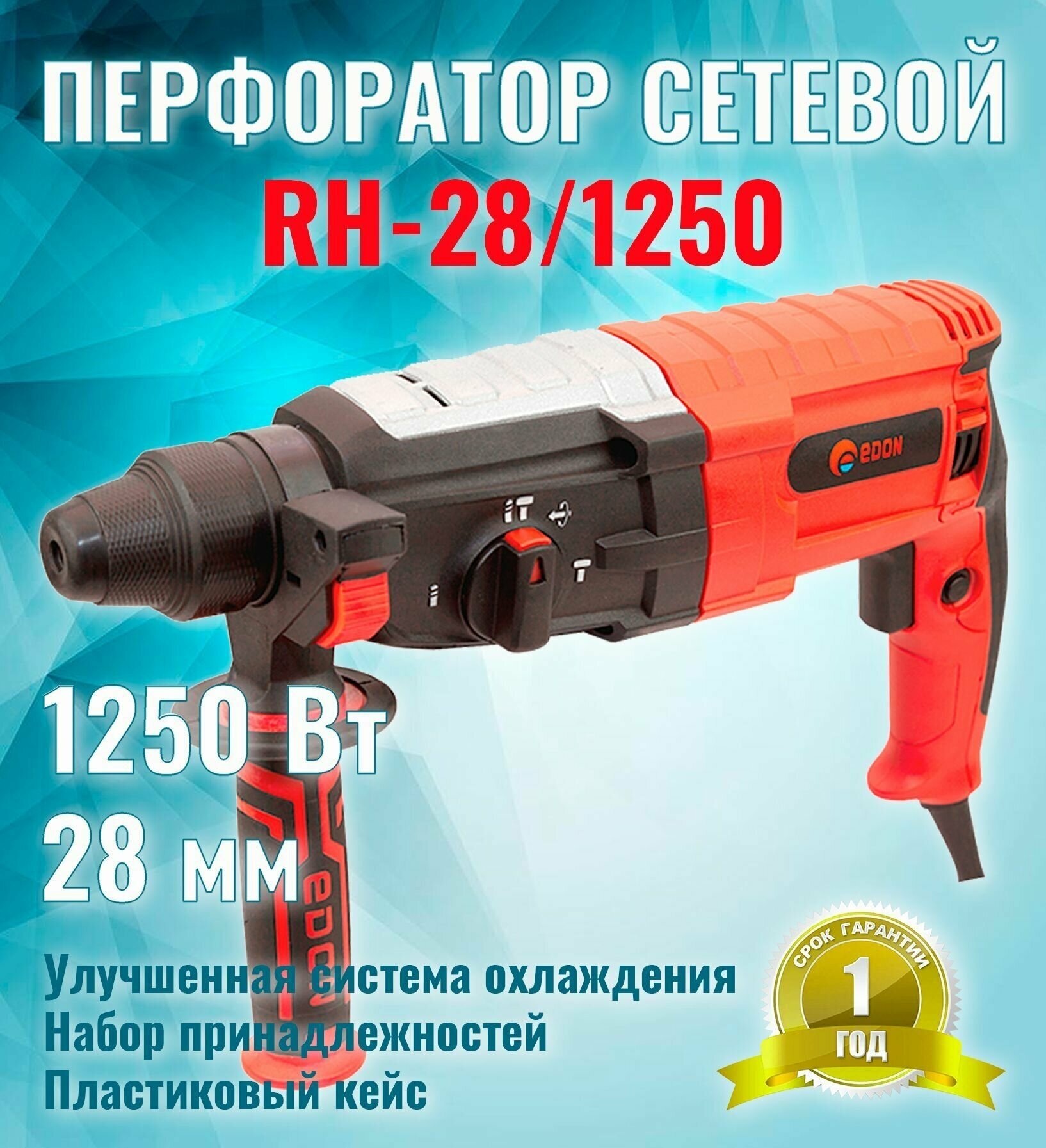 Perforator, chisel SDS-plus 1 pc., lance SDS-plus 1 pc., drill SDS-plus 6 mm 1 pc., drill SDS-plus 8 mm 1 pc., drill SDS-plus 10 mm 1 pc., chuck SDS -plus 1 pc., limiter rod 1 pc., instruction manual, case