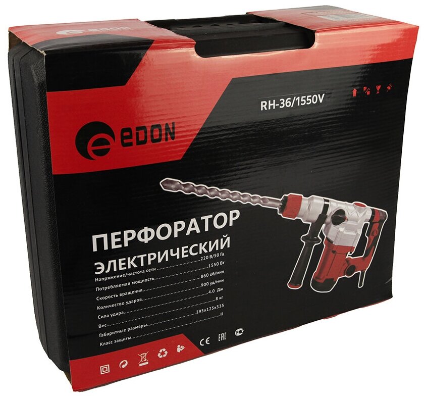 Perforator - 1 pc.; Chisel SDS-plus - 1 piece; Peak SDS-plus - 1 pc.; Drill SDS-plus 6 mm - 1 pc.; Drill SDS-plus 8 mm - 1 pc.; Drill SDS-plus 10 mm - 1 pc.; Cartridge SDS-plus - 1 pc.; Graphite brushes - 1 pc.; Container with lubricant for nozzles; The k