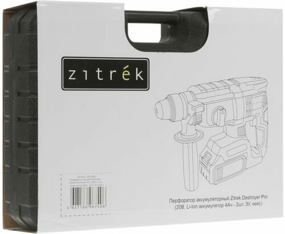 Equipment: Cordless perforator - 1 pc. High-capacity battery 4Ah - 2 pcs. Charger - 1 pc. Case for storing and transporting tools - 1 pc. Additional handle - 1 pc. Operating Instructions - 1
