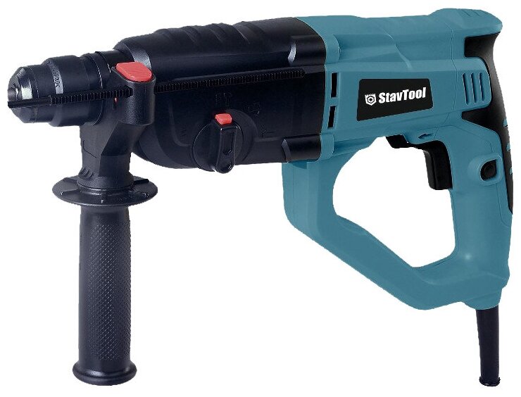 Additional handle, drilling depth gauge, 3 drills, lance, chisel, spare brushes, key chuck, case