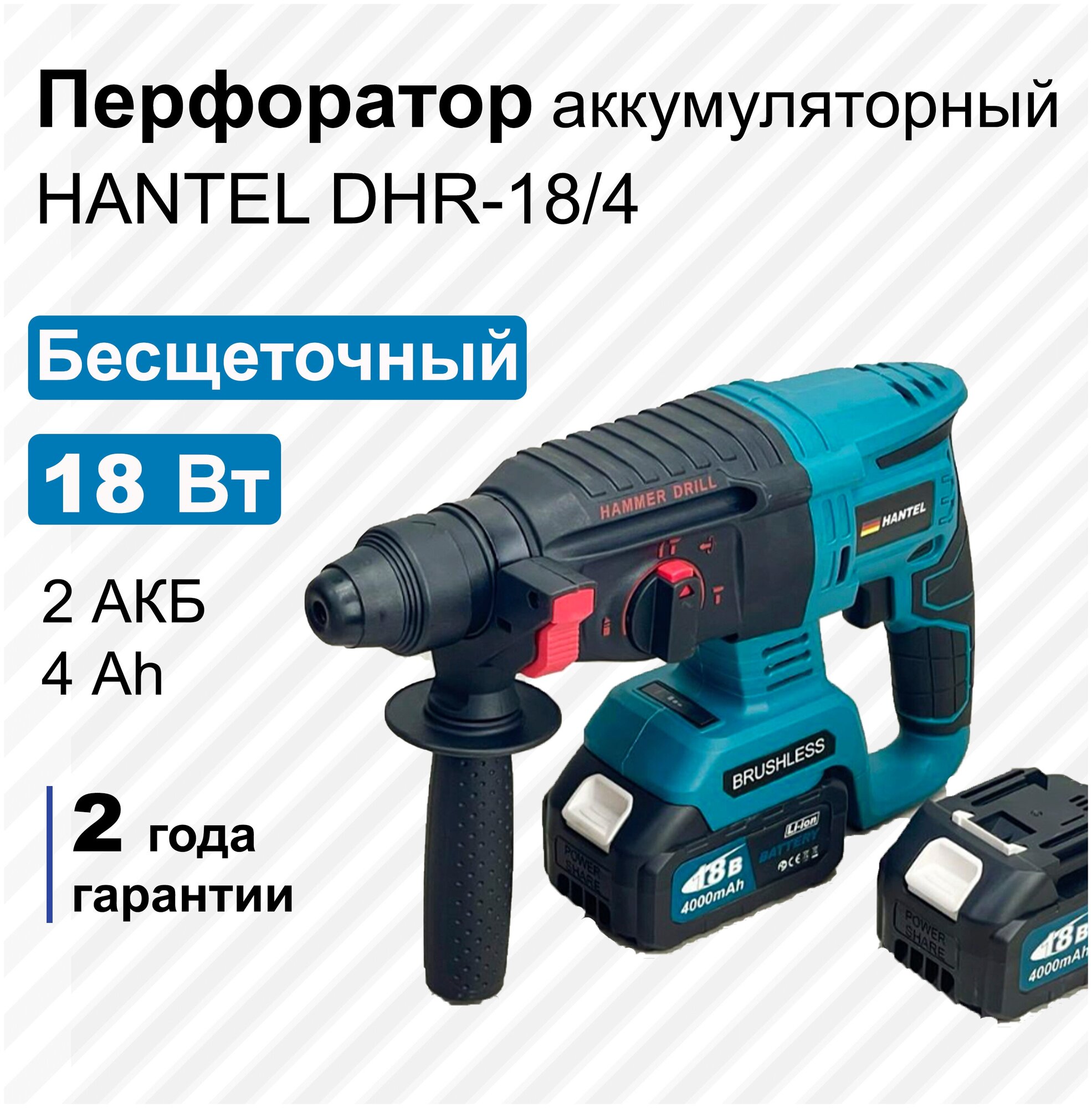 Rechargeable brushless Hantel DHR-18/4 / 2 batteries / 4 operating modes /SDS +/