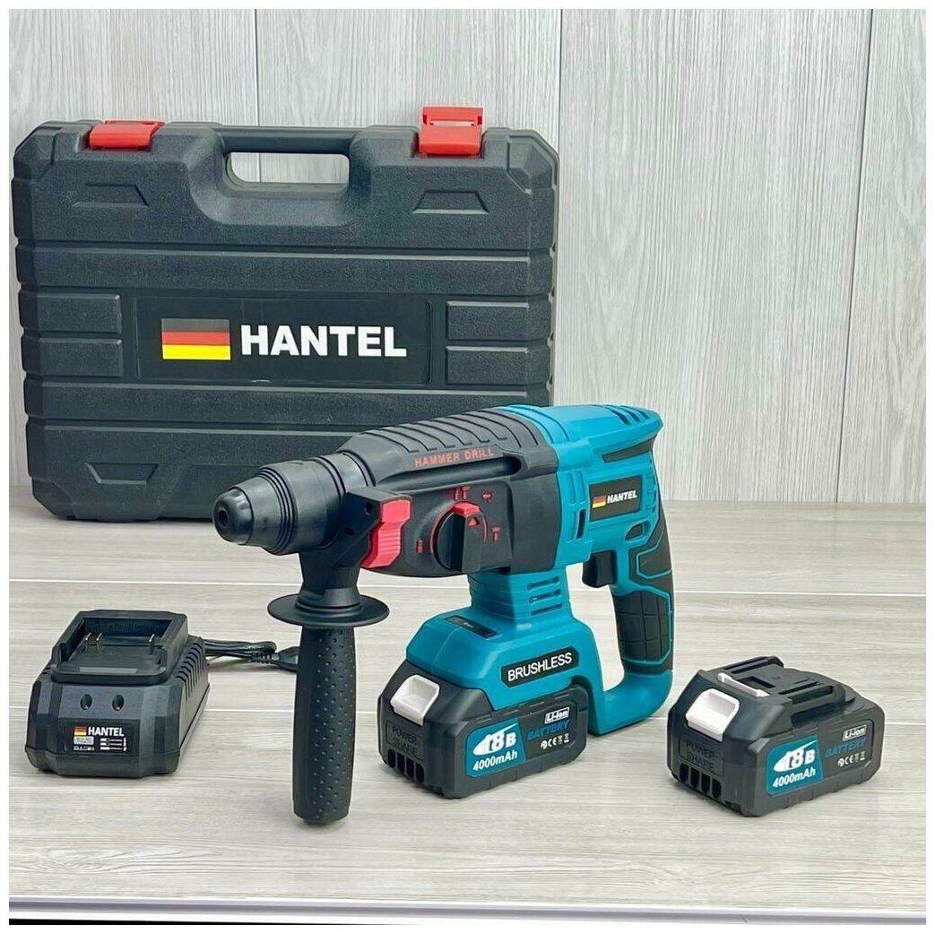 18V brushless cordless rotary hammer with two 4.0 Ah batteries