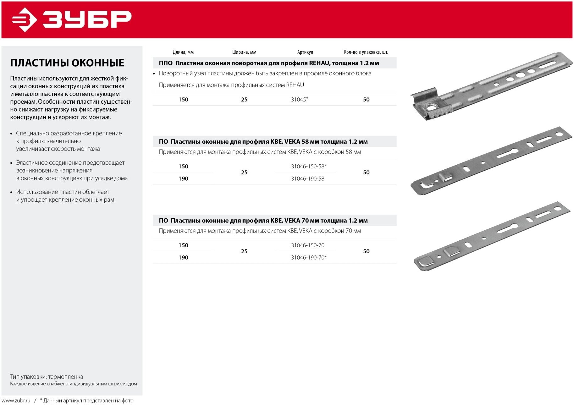 Plate ZUBR 31046-150-70, 150x25x1.2 mm
