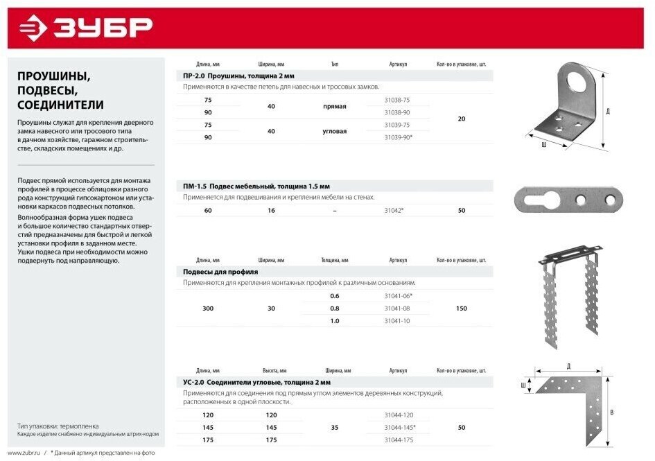 Hanger for profile 300x30 x 1 mm 1 pc 31041-10