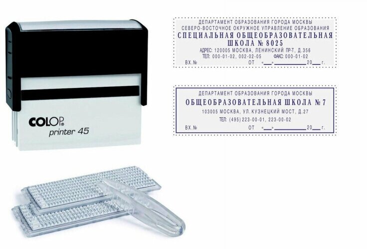 Type: stamp, shape: rectangular, features: automatic tooling, window for viewing the print, self-typesetting, Automatic