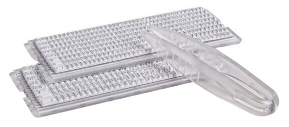 6 lines without border, 4 lines with border; included: replacement cushion blue E/40; Type Set A, B 2.2 and 3.1 mm; tweezers; frame