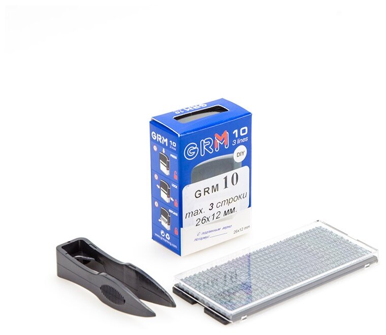 Self-typesetting mini stamp 3-line, imprint 26x9 mm blue, GRM 10 DIY, CASH INCLUDED, 116000000