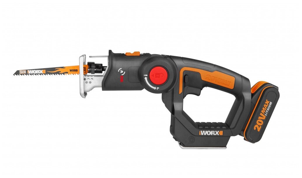 Reciprocating jigsaw cordless Worx Axis WX550, 20 mm, 20V, battery 2.0 Ah, charger 2 A, case