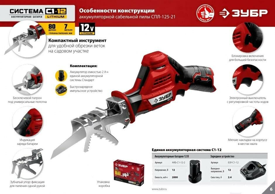 Peculiarities: Cutting depth wood: 80 mm; cutting depth of metal: 7 mm; battery charge time: 1 hour