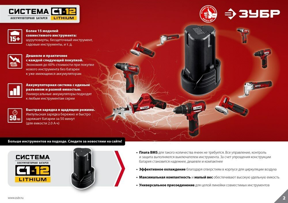 ZUBR SPL-125-22 Li-Ion 12V 2 Ah x2
