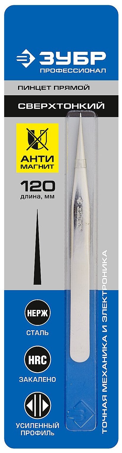 Type: tweezers, tips: pointed, straight, features: anti-magnetic, material: stainless steel, profile: flat, length: 12 cm
