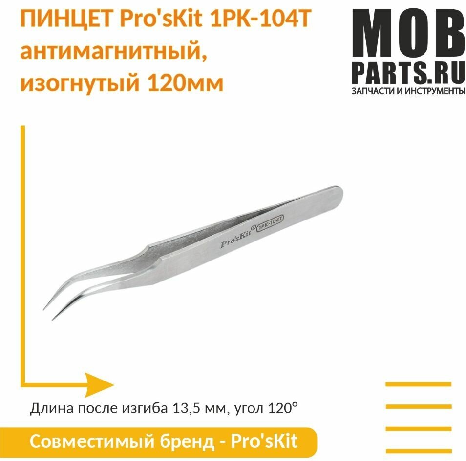 Type: tweezers, tips: pointed, curved, features: anti-magnetic, material: stainless steel, profile: flat, length: 12 cm