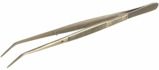 Type: tweezers, tips: curved, features: anti-magnetic, material: stainless steel, with non-slip handles, profile: flat, retainer, length: 15.50 cm, weight: 22 g