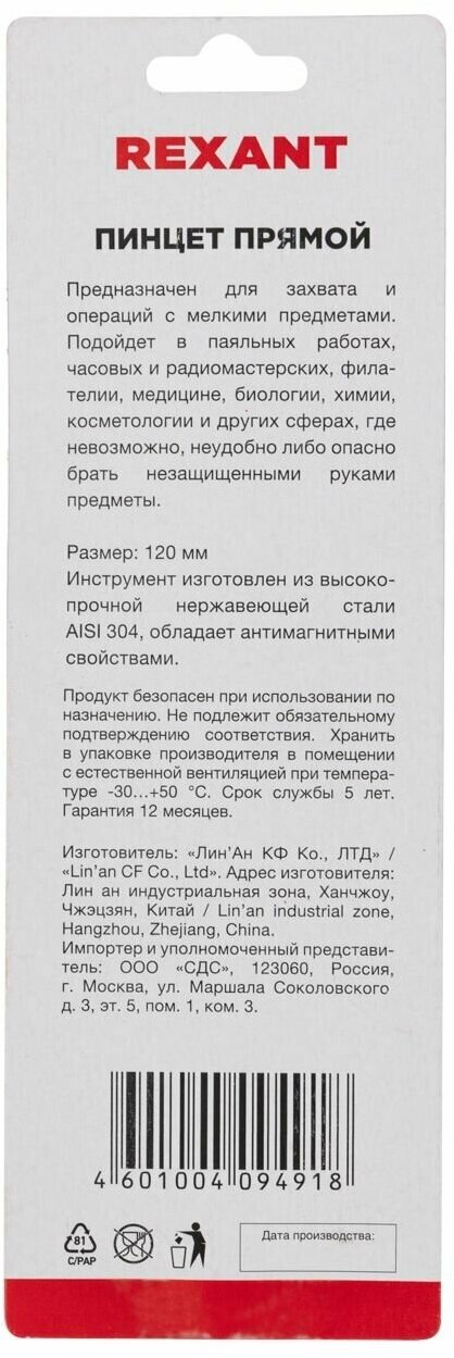 Type: tweezers, tips: straight, features: anti-magnetic, material: stainless steel, length: 12 cm, weight: 32 g