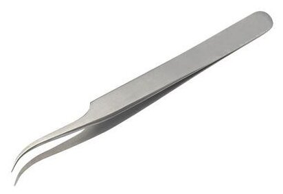 Type: tweezers, tips: pointed, curved, material: stainless steel, profile: flat, length: 12 cm