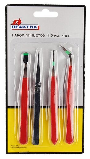 Type: set of tweezers, tips: pointed, curved, number in the set: 4 pcs.