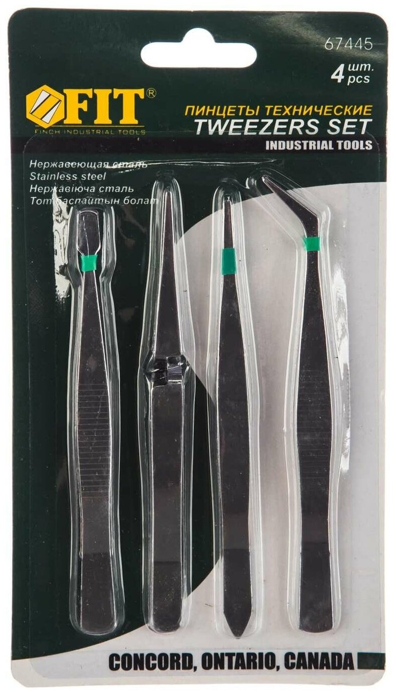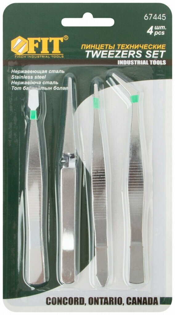 Type: set of tweezers, tips: curved, straight, material: stainless steel, profile: flat, number in the set: 4 pcs.