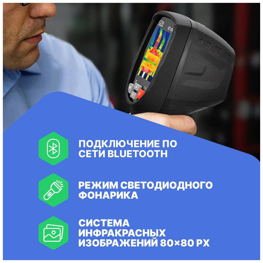 Bluetooth BLE4.0, registration and data transmission of the thermal imager; automatic recognition of "hot / cold" areas, flashlight