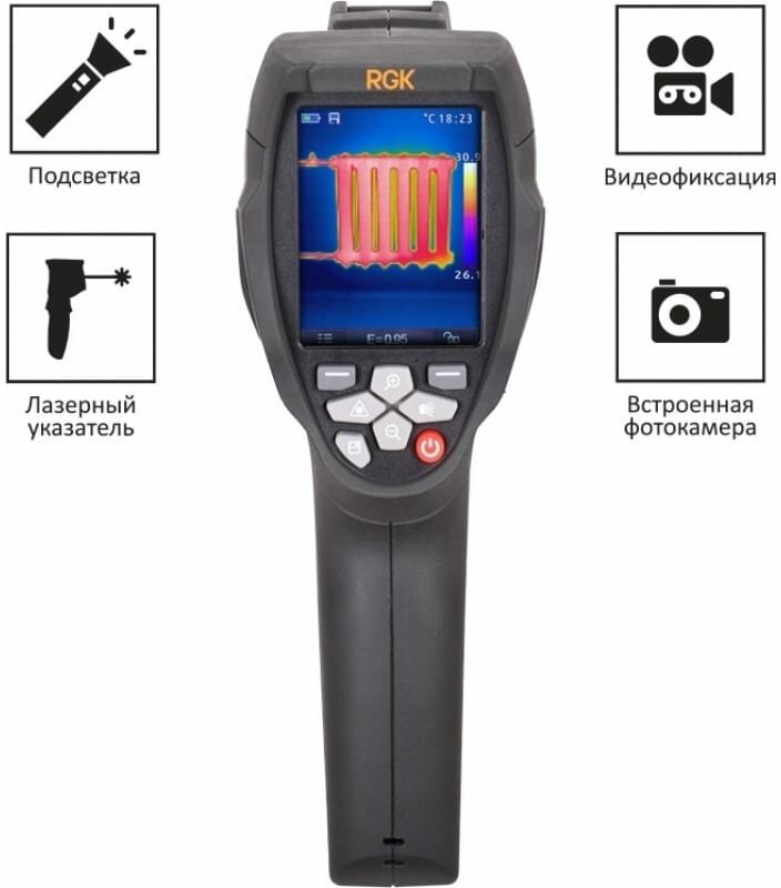 Type: thermal imager, Included in the State Register, automatic shutdown, sound indication, function of fixing values, memory card, degree of protection: IP45, batteries: accumulator, units of measurement: Kelvin, Fahrenge