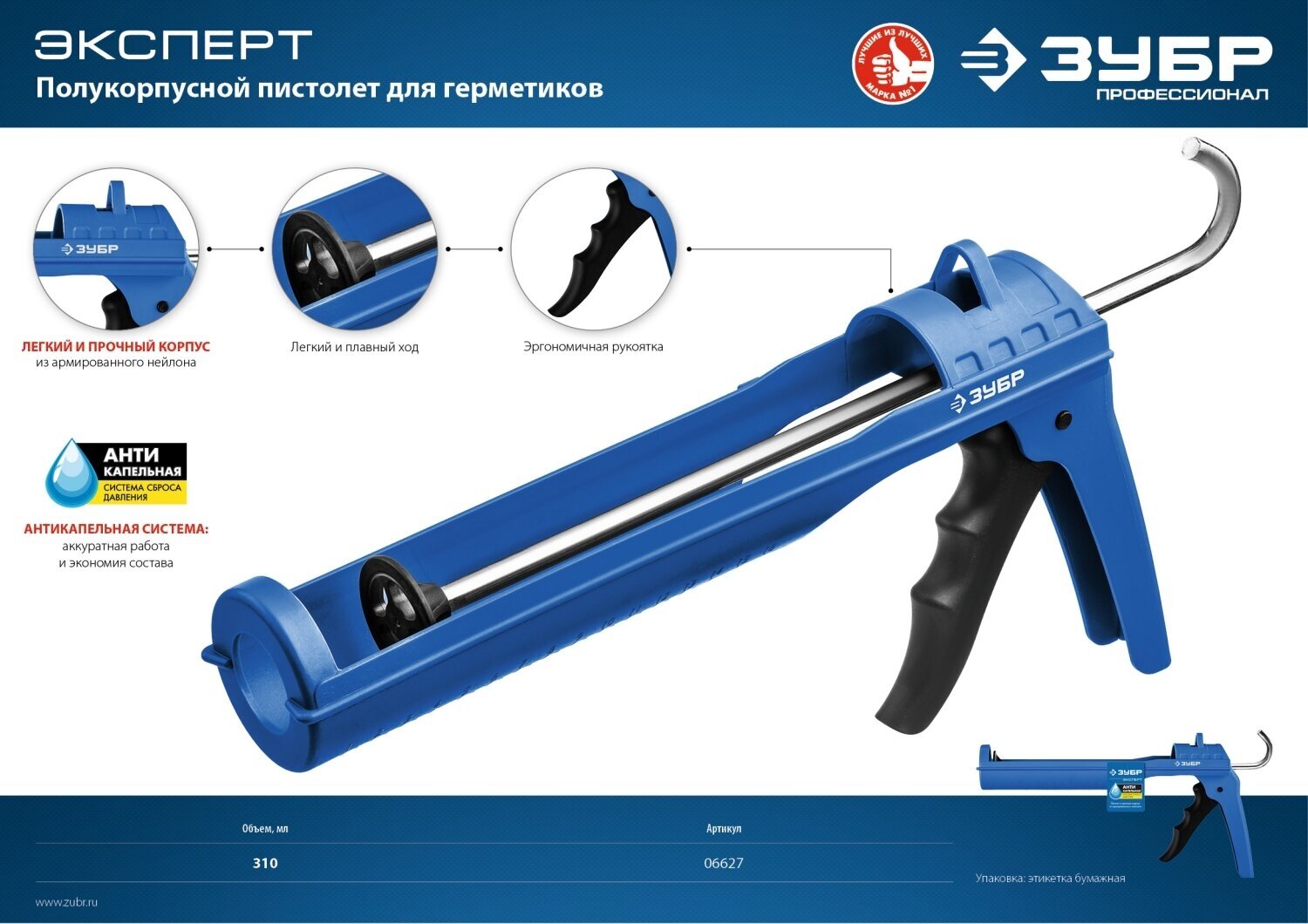 Type: mechanical, design: semi-closed, cartridge volume: 310 ml, sealant packaging: cartridge