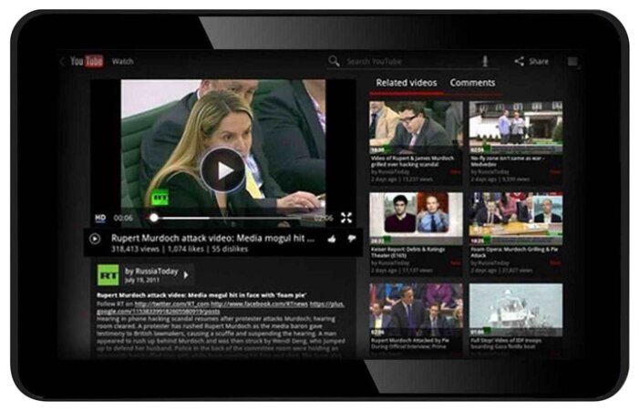 Operating system: Android, screen diagonal: 9-9.7, screen resolution format: SD, number of processor cores: 2, keyboard: no, number of main cameras: 1, features: memory card slot, accelerometer, built-in microphone