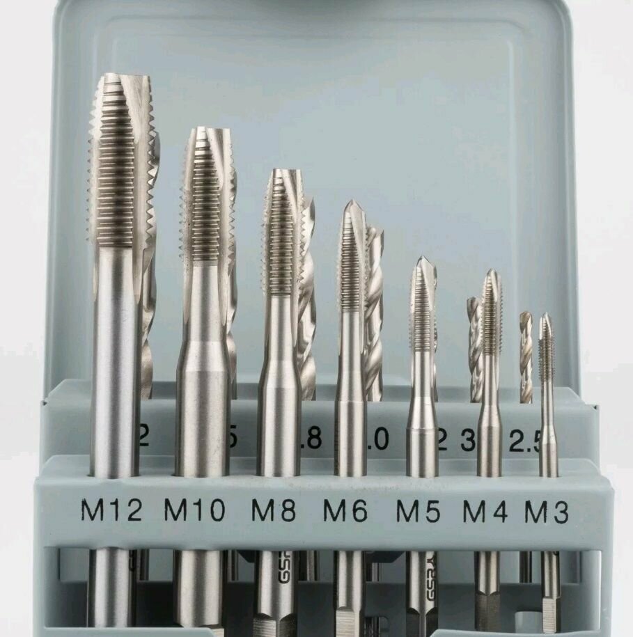 Set of machine taps and drills M3-M12 HSSG 14 pieces 08303017 GSR Germany