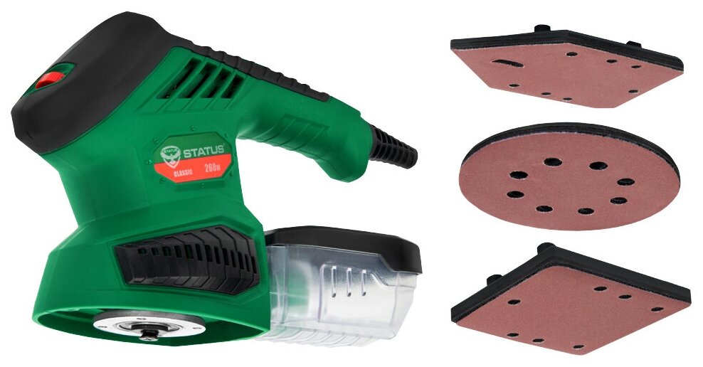 Type of power supply: from the mains, power consumption: 260 W, functions: speed control, design features: power button lock, dust collector, packaging: box, weight: 1.50 kg