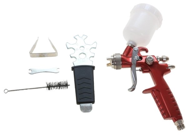 Type: pneumatic spray gun, tank volume: 0.12 l, material supply adjustment, nozzle diameter adjustment, maximum nozzle diameter: 1.40 mm, maximum spray width: 150 mm