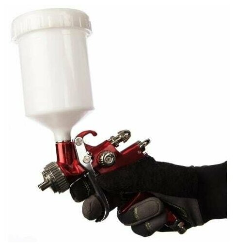 Type: pneumatic spray gun, tank volume: 0.50 l, material supply adjustment, nozzle diameter adjustment, maximum nozzle diameter: 1.60 mm, maximum spray width: 290 mm