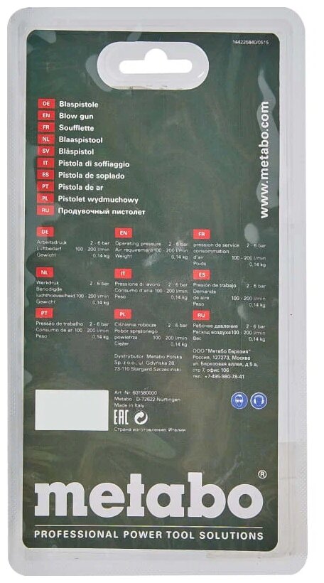 Type: percussion, type: gun, cartridge type: external square, seat square, inch: 1/2, maximum pressure: 6.24 atm, maximum air consumption: 184 l/min, air nozzle diameter, inches: 1/4, connection type : re�