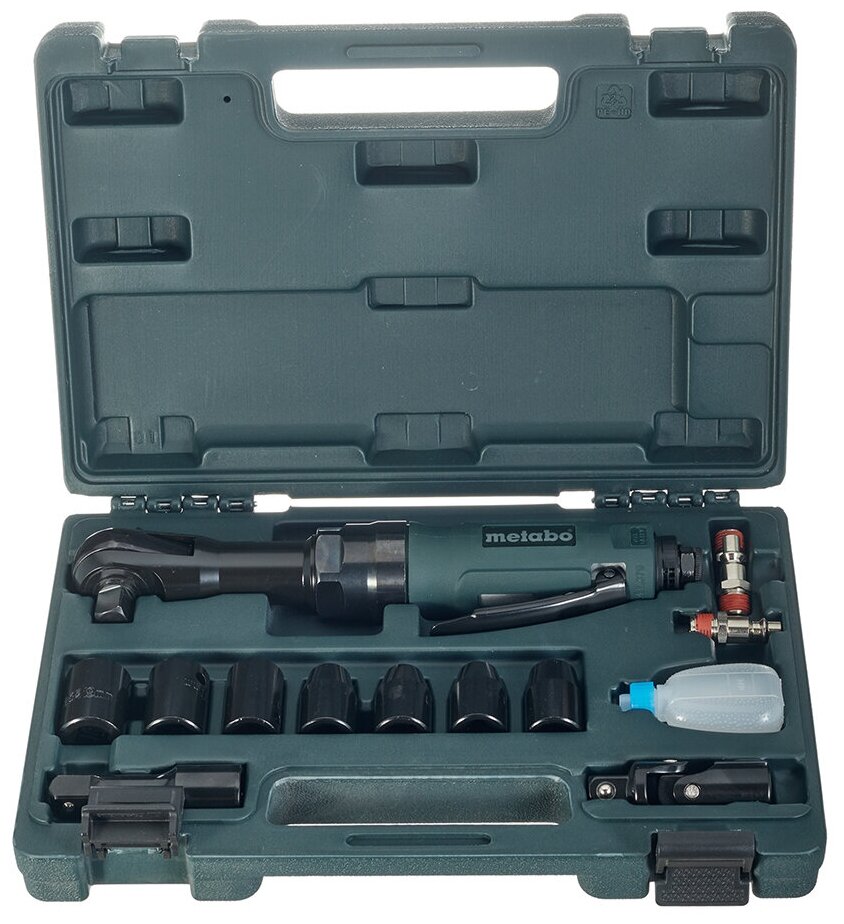 Plug-in nipple 1/4" EURO, plug-in nipple 1/4" ARO/Orion, plug-in nipple 1/4" ISO, 7 sockets 9, 10, 11, 13, 14, 17, 19 mm, plastic case, bottle of oil, extension 75 mm, universal joint