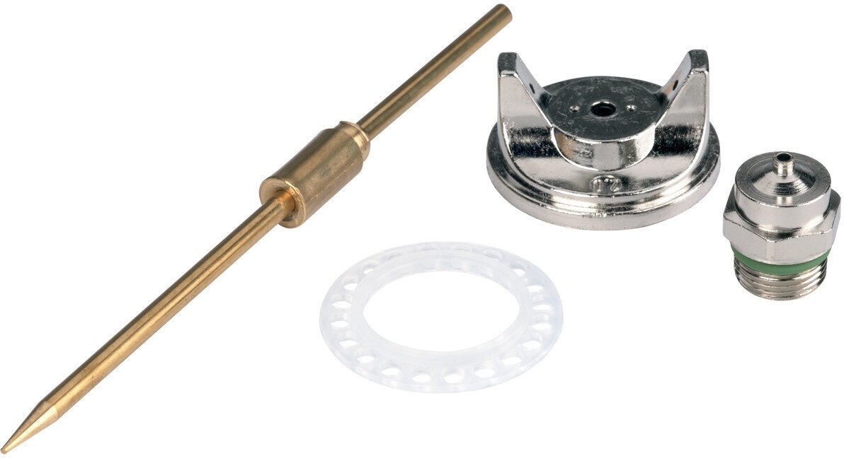 Plug-in nipple 1/4" EURO; plug-in nipple 1/4" ARO/Orion; plug-in nipple 1/4" ISO; plastic flow cup 0.6 l; filters; nozzle Ø 1.3 mm; cleaning brush; mounting key