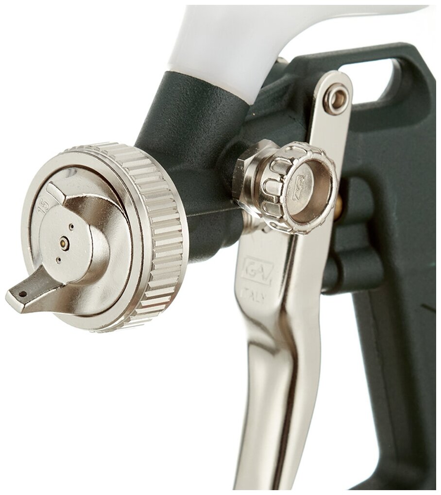 Type: pneumatic spray gun, tank volume: 0.50 l, material supply adjustment, maximum nozzle diameter: 1.50 mm