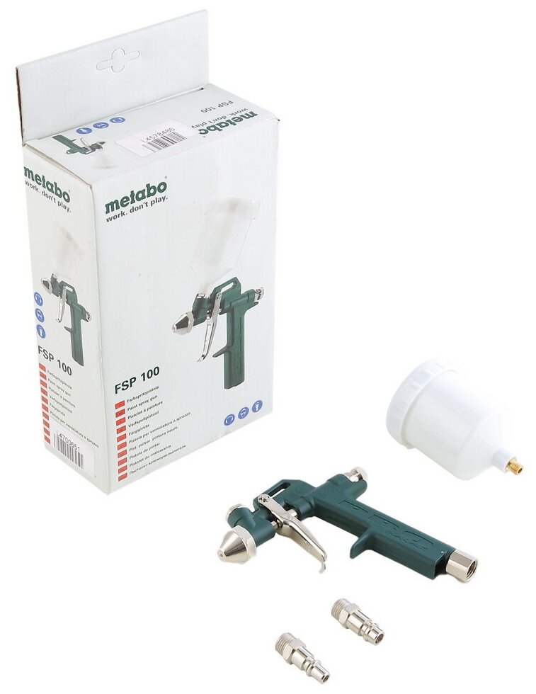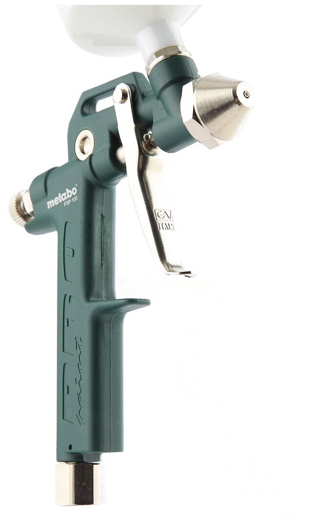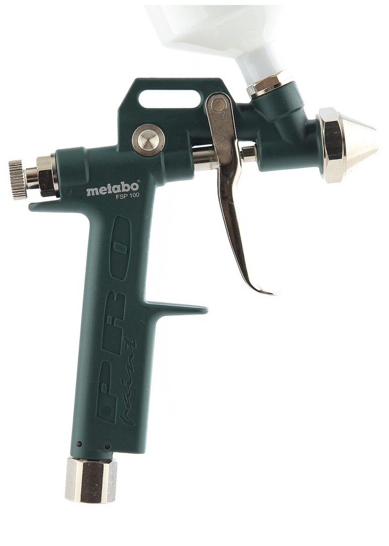 Type: pneumatic spray gun, tank volume: 0.10 l, material supply adjustment, maximum nozzle diameter: 1 mm