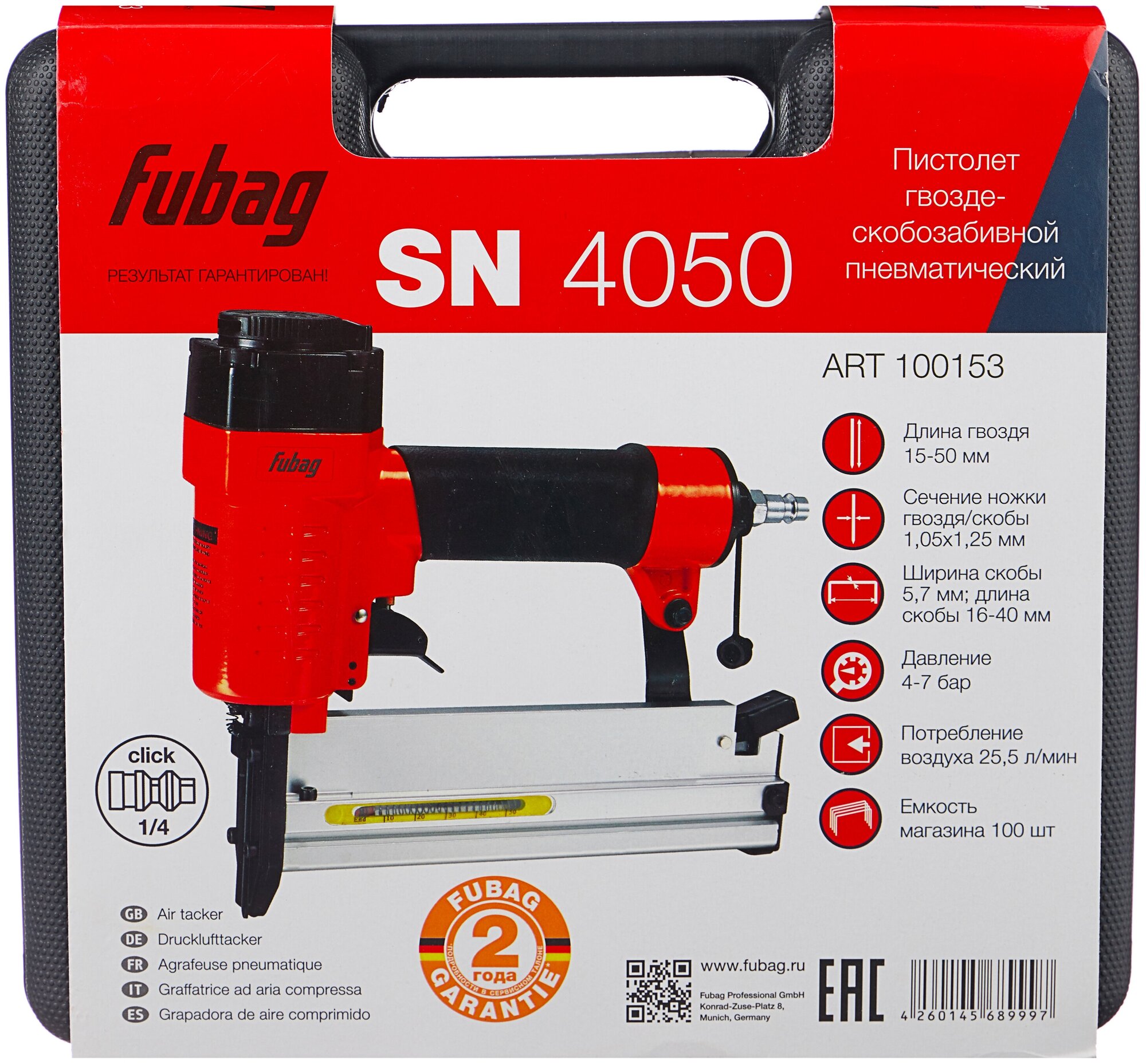 Fastener type: staples and nails, maximum pressure: 7 atm, maximum air flow: 25.50 l/min, air nozzle diameter, inches: 1/4, connection type: rapid, staple type: 4/55/90/18GA, maximum length staples: 40 mm, maximum w