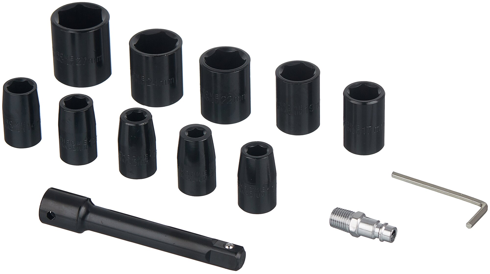 Set of heads: 9, 10, 11, 13, 14, 17, 19, 22, 24, 27 mm.