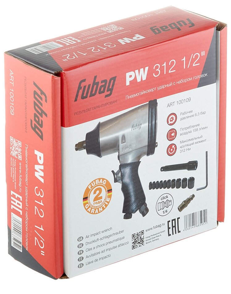 10 sockets 1/2", extension 1/2" - 125 mm, hex key - 4 mm, oiler, fitting, box