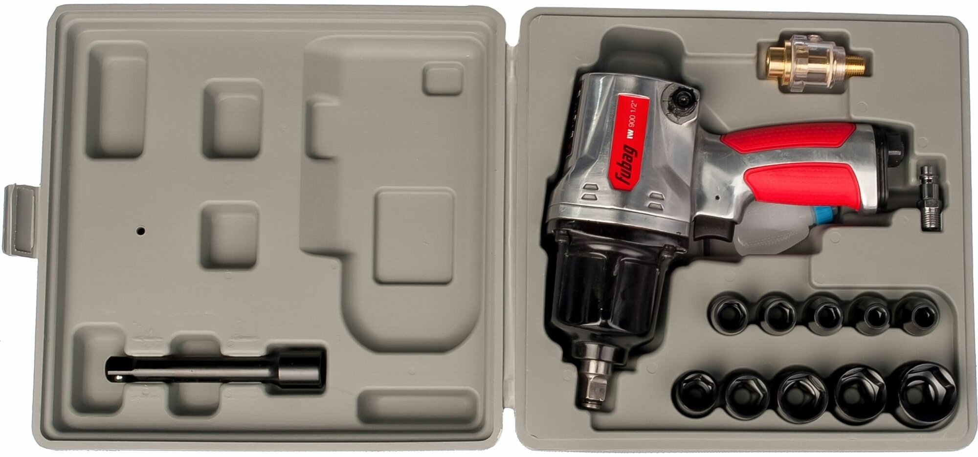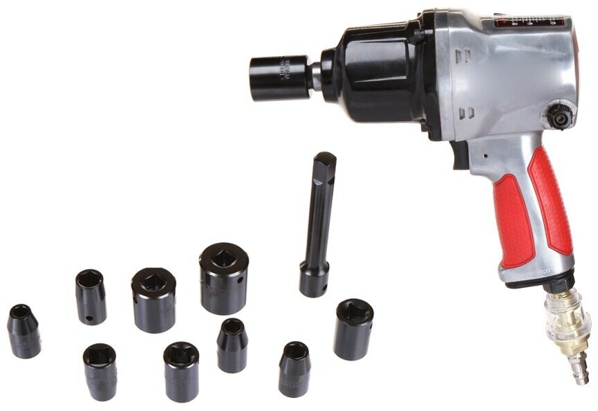 Set of heads: 9,10,11,13,14,17,19,22,24 and 27 mm., extension, oil spray lubricator, rapid fitting