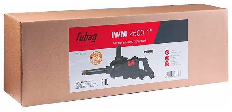 Type: impact, type: straight, chuck type: external square, seat square, inch: 1, maximum pressure: 6.14 atm, maximum air flow: 340 l/min, air nozzle diameter, inches: 1/2, torque adjustment