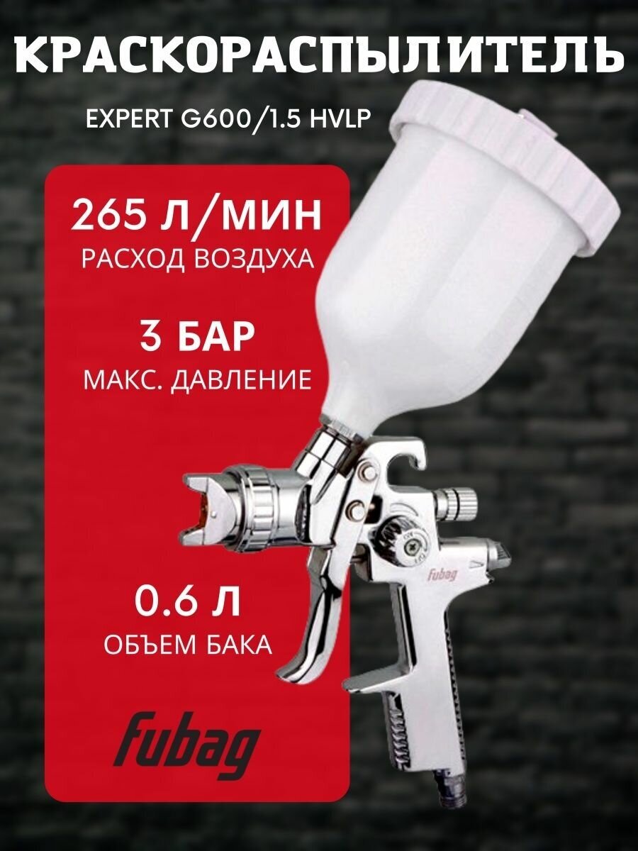 Type: pneumatic spray gun, tank volume: 0.60 l, spraying method: HVLP, material flow control, maximum nozzle diameter: 1.50 mm