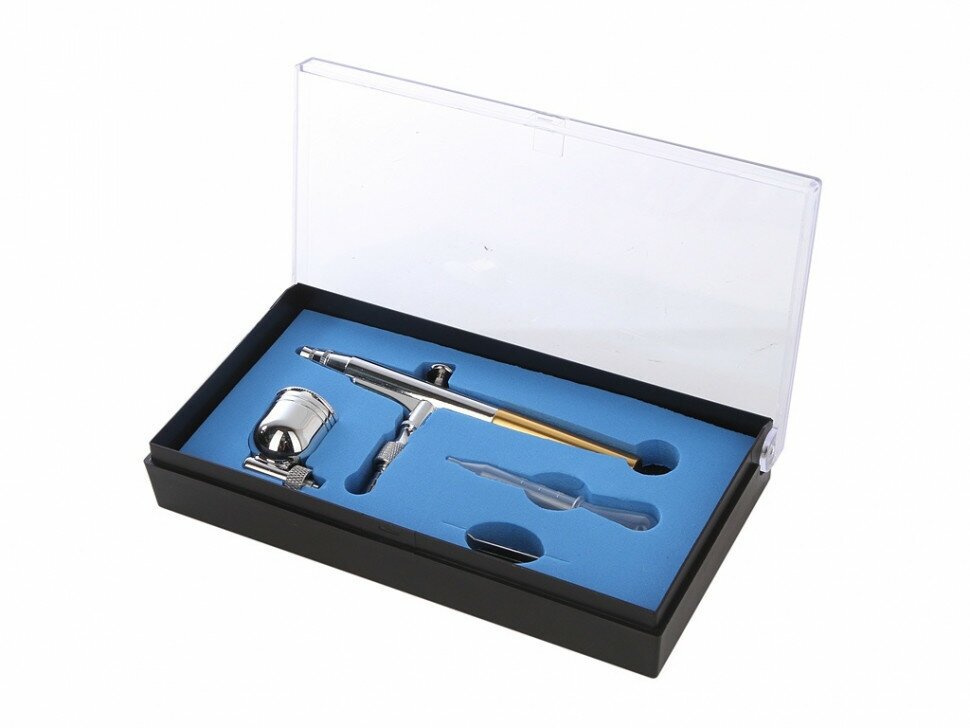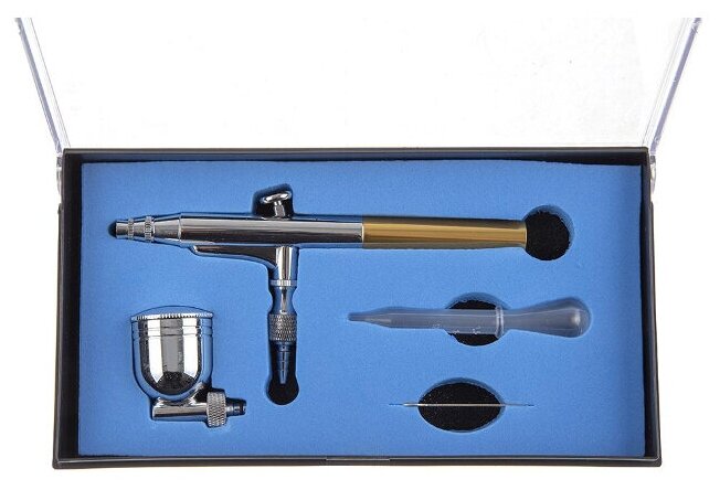 Type: airbrush, tank volume: 0.01 l, action type: double independent, material feed adjustment, nozzle diameter adjustment, maximum nozzle diameter: 0.30 mm